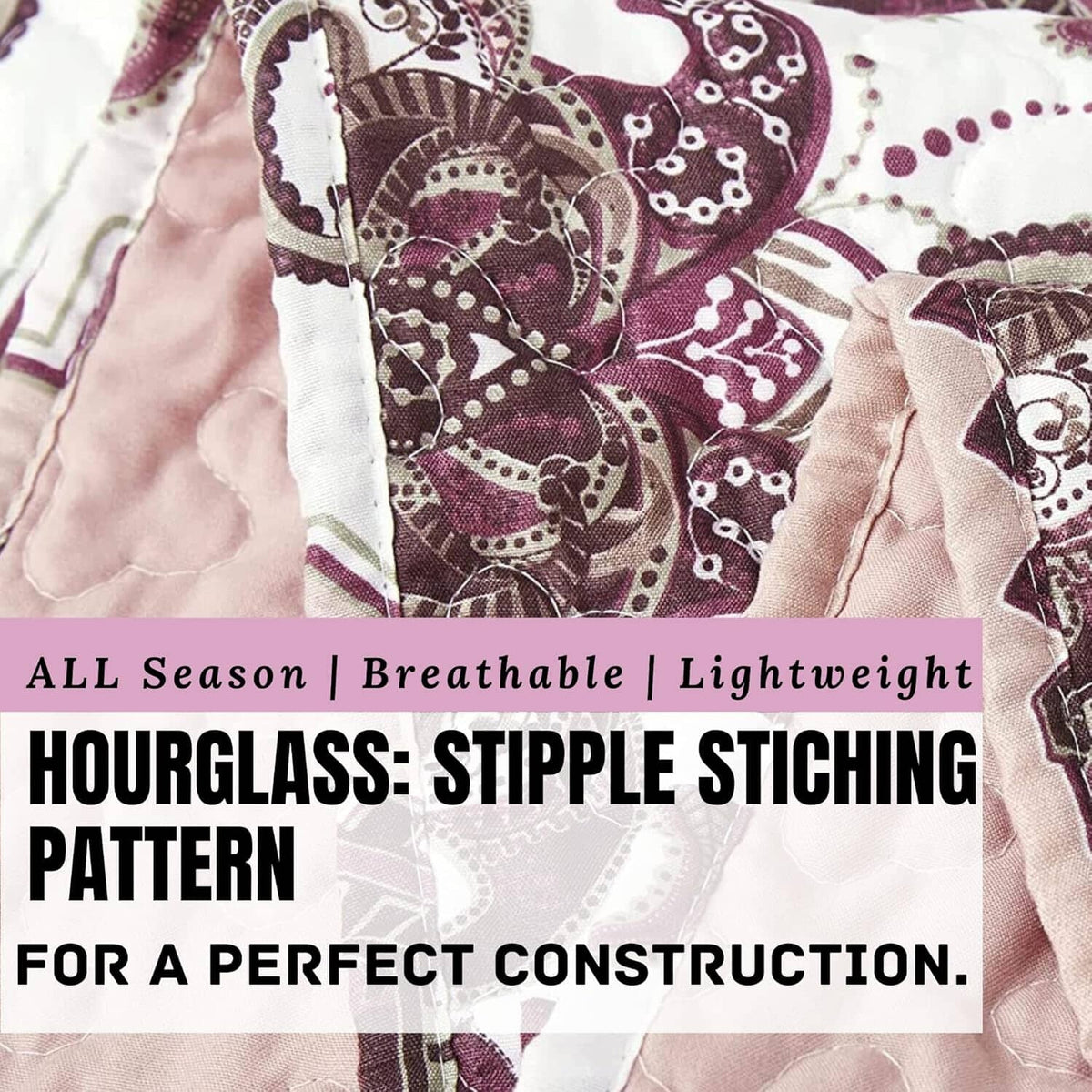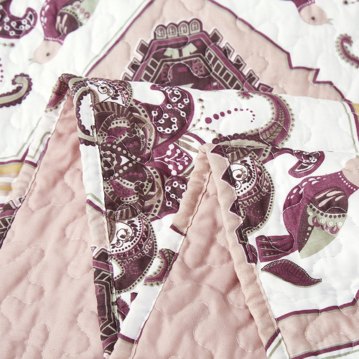 Accented with Elegant mustard, dusty rose pink, burgundy purple shades to bring to your bedroom. A lightweight, durable premium microfiber bedspread coverlet set. On the back side rocks a soothing dusty rose.