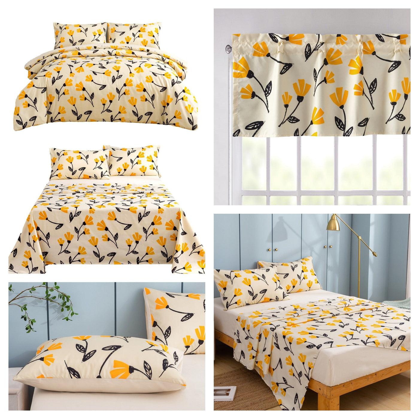- Flat Sheet is a yellow floral pattern on a cream yellow ivory tan background