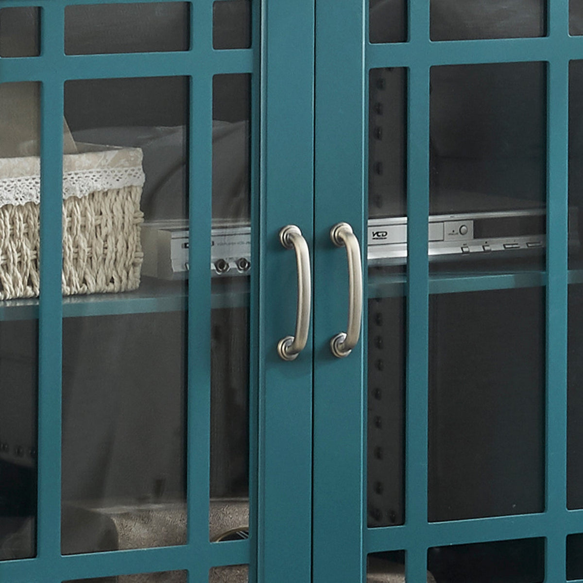 62' TV Stand, Buffet Sideboard Cabinet, Teal Blue